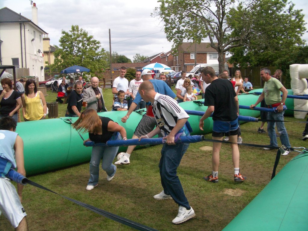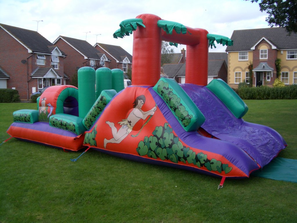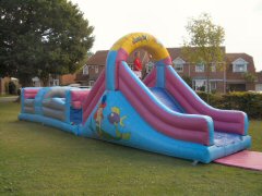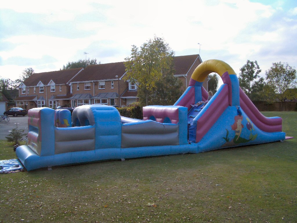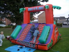 | The Assault Course 12' x 25' (3.6mtr x 7.6mtr) includes biff and bash, then a tunnel, more biff and bash, onto the cargo net and down the slide. | ||