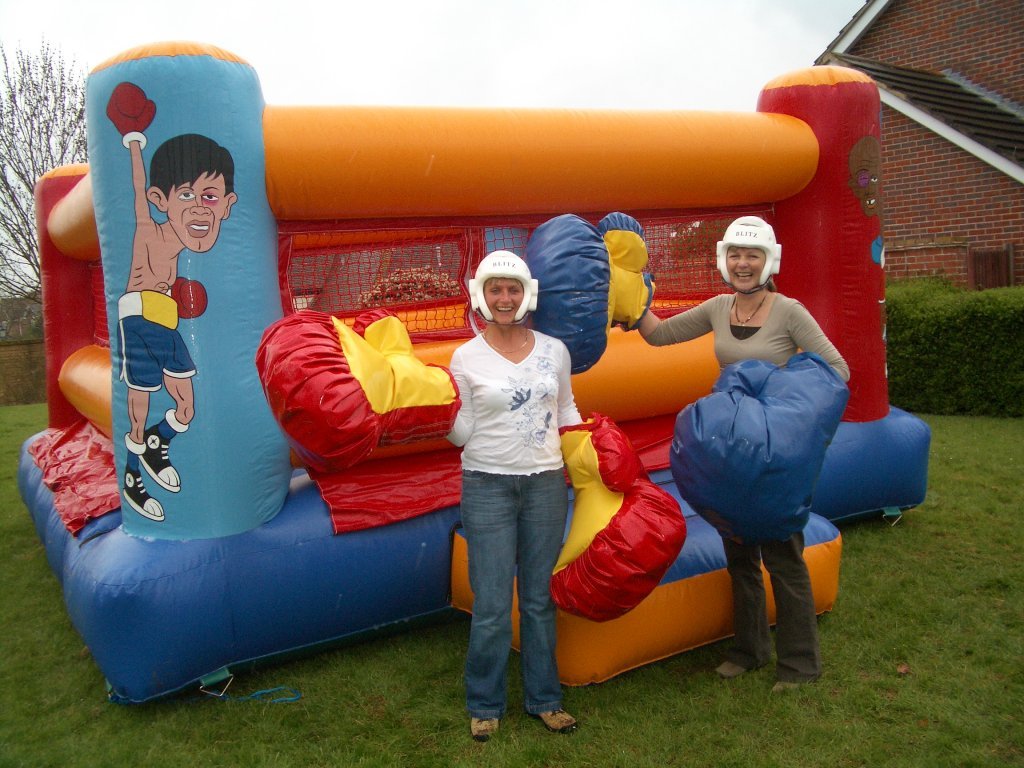 Bouncy Boxing 15' x 15' (4.5mtr x 4.5mtr) Contenders wear protective headgear and giant ‘over the top’ foam filled gloves. Great fun |