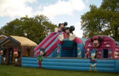 Huge inflatable theme park that includes a giant slide, a large castle for the older ones and a smaller enclosed castle for the smaller ones (or we can mix and match to your requirements). Supplied with a themed barrier that houses the inflatables complete with an entrance and waiting area. This is very eye catching and over sixty feet in length, and a 'must have' for any large fete, fair or tournament.